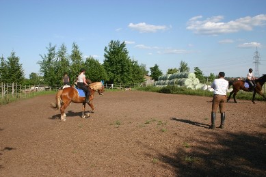 Der wunderschön gelegene Außenplatz steht allen Reitern für Unterricht oder Einzelreiten zur Verfügung.